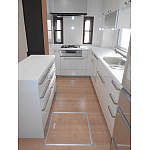 食器棚を撤去し、キッチンと同じLクラスのカウンタータイプのカップボードを採用。収納力もありアイランドとして使用でき、高さによる圧迫感もなくなったため、キッチン全体が明るくなった。