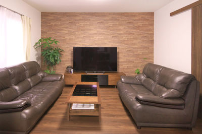 あまり使わなくなった和室を洋室にすることで客間兼リビングへ用途変更。引戸を開ければ、ダイニングとつながる広々とした空間に。木目調クロスがアクセントになっています。
