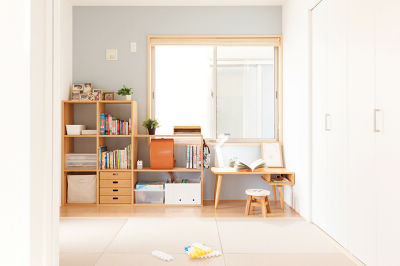 和室は、床を一部フローリングにして子どもの勉強コーナーに。