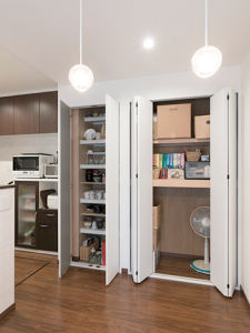 キッチン脇には、家事や調理の道具類を収納するパントリーを造作。
