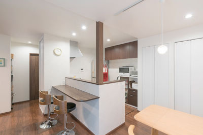 娘の宿題を見ながら家事ができるカウンターキッチン。