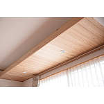 高低差をつけた天井の間接照明が柔らかな光を演出。広がりを感じる効果が。