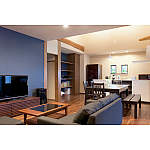 既存の和室2部屋と廊下、縁側部分を一体にして家族が集う広いLDKに一新。太い柱や梁はそのままいかし、かつての面影を残して。明るい仏間空間も工夫のひとつ。