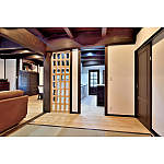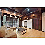 リビングのテーブルは床の間のケヤキの床板を再利用。以前の趣が随所に甦ります。