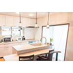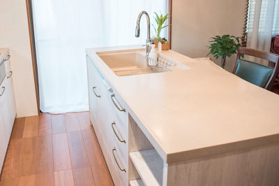 「家事をしながらお庭が見えたらいいな。お庭の見える位置にしてね」と、手入れされた庭を一望できるこの場所に対面キッチンをリクエスト。
