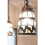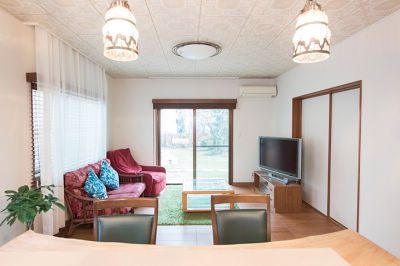3つ並んだアンティークのペンダントライトが、既存の天井ともなじんでいます。