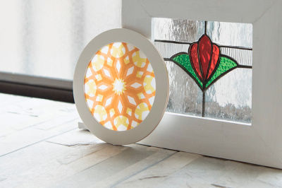 アンティークな雰囲気を演出するイタリアの石のタイルは、奥様の作品(手前)とも見事にマッチしています。