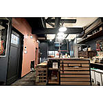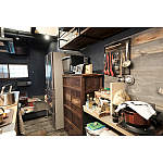 壁には古材を貼り、部屋の雰囲気に合うよう食器置きは水屋箪笥をリメイクして使用