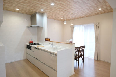 対面カウンターキッチンになり、家事をしながらリビングダイニングを見渡せる明るい空間に。