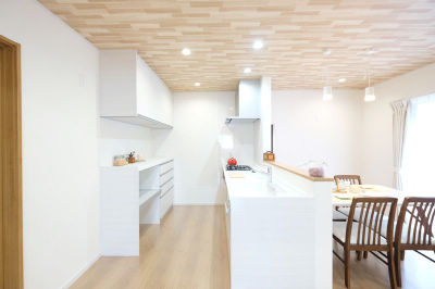 対面カウンターキッチンになり、家事をしながらリビングダイニングを見渡せる明るい空間に。