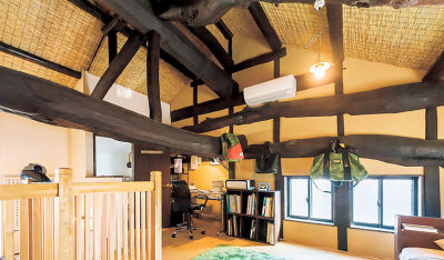 物置だった屋根裏部屋は、階段をつけてご主人の趣味部屋に。ダイナミックな風合いの梁が印象的。