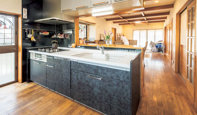 多い日はキッチンで10人分の食事を用意することも。大量の鍋や食器が収まる大容量の引き出し収納。