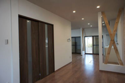 撤去した間仕切り壁があった場所には筋交いを設置し、あえて見せることで空間の隔たりを少なくした。