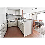 北側にあった閉鎖的な壁付キッチンを住まいの中央に移動。南向きでリビング全体を見渡せるキッチンに。広いデッキを新設し、外ともつながる明るく開放的なLDKを実現しました。
