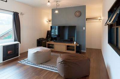 読書のためのリーディングルーム(右)とゲームや映画鑑賞のための洋室(左)。お部屋ごとに照明を変えました。