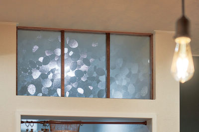 ご両親が使っていた昔の本棚のガラスを、パントリーの上の開口に使用。細部まで思い出あふれる住まいに。