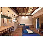 天井や梁など、以前の住まいの素材を残した部分をライトアップ。古き良きものを印象的に見せながら、LDK全体が心地よい明るさになるよう照明設計しました。