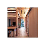 リビングの入り口から見て正面奥に、庭が見える窓を配置し、奥行きを感じさせています。正面の窓にまっすぐにのびる廊下の天井は昔のまま残しました。