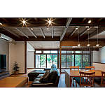 計画当初は2階の床組を見せる予定はありませんでしたが、解体時あまりにも素敵で趣のある床組が出てきたので、塞がずに現しのまま残すことをご提案しました。「みんなに褒めてもらえてうれしい。この天井がとてもお気に入りです」とE様。