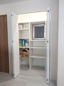 キッチン奥にシンプルな造りのパントリーを設けました。