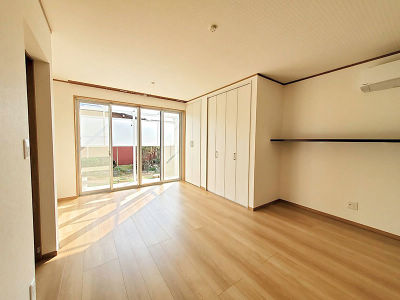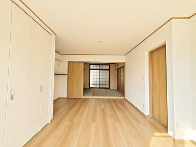 サンルームを減らして狭くなった分、和室を縮小し、リビングの広さを確保しました。間仕切建具を3枚引戸にすることで開放的な和室になりました