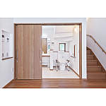 水廻りへの扉は三枚連動引き戸。部分的に閉められるので、介助中のプライバシーにも配慮できるようにしました。