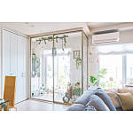 ガラスの間仕切りやミラーを設置して視覚的広がりを持たせ、奥行き感を生み出しています。