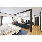 補強のために入れた梁は、ベッドルームとセカンドリビングをゆるやかに区切り、アクセントに。