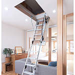 ロフトには天井収納用はしごを採用。軽量で取り扱いも簡単。普段は天井に収納できるので空間を広く使えます。
