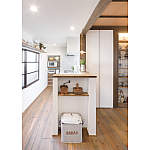 キッチンはリビングからの視線を遮るカウンター付きの棚を設置しました。