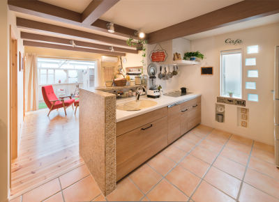 ご夫婦自ら製作した家具がぴったりマッチするお家に大変身!床はテラコッタタイルでムード感たっぷり。