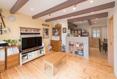 ご夫婦自ら製作した家具がぴったりマッチするお家に大変身!床はテラコッタタイルでムード感たっぷり。