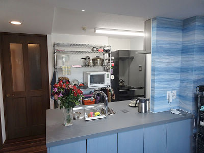 IHコンロ・食器洗い機を採用し、袖壁部分を撤去したことによりキッチン幅を広くなり、安全で便利なキッチンになりました。