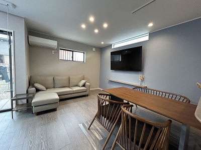 リビングに設置した高窓からは自然光をより多く取り入れ明るい空間へ。