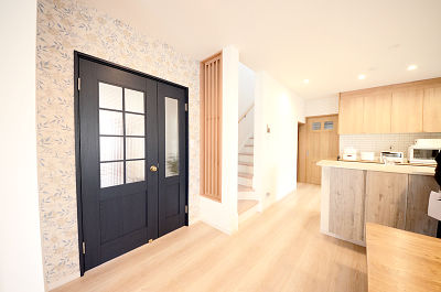 8畳と6畳の和室はリビング・ダイニングへと生まれ変わりました。明るく開放的な空間にインテリア格子を設けることで空間を分けながらも開放感のある広々としたLDKを実現しました。