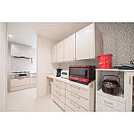 独立型のキッチンスペースでありながら、ダイニング・リビングともつながり、調理中孤独感を感じないよう配慮。また、ダイニングとの壁にカウンターを設置することで閉塞感も軽減され、適度な籠り感で落ち着いて調理できます。