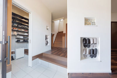 スリッパをスマートにしまえるニッチもお気に入り。お客様を気持ちよく迎えられるのでうれしいです。