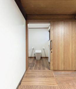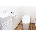 もうひとつの和式トイレも、省スペースで設置できるタンクレスの洋式トイレに新調。床は廊下と合わせてフローリングに変えて、段差を解消しました。