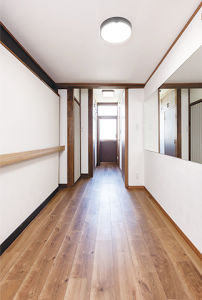 洗面台3つを撤去し、車いすでも通りやすい広さを確保。伝い歩きでも移動がしやすいように、手すりを設置しました。