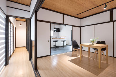 ダイニングキッチン隣の和室は洋室に改装。寝室やリビングにもなり、間仕切りを外せば大空間として使えます。