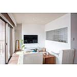 テレビの奥に大容量の収納を設けて、よく使うものの置き場所に。リビングがいつも片付いた状態になりました