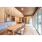 ふたつの和室と縁側をつなげて、広々としたリビングに、杉の羽目板や化粧梁をアクセントに、あたたかみのある空間になりました。
