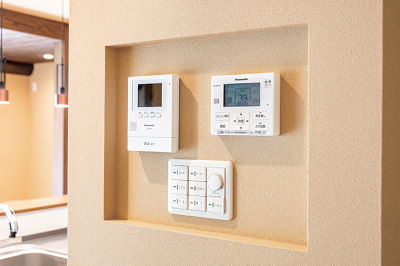 ドアフォンや照明スイッチをニッチ内にまとめて1か所に。使いやすく、見た目もすっきり納まって喜んでおられます。