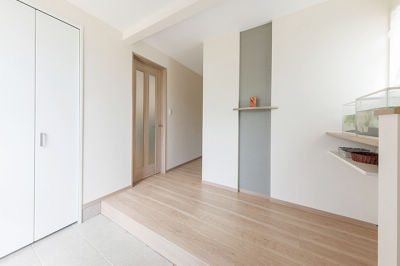 大容量のシューズクローゼットを新設。飾り棚を設けたゆとりある玄関ホールで、お客様をお出迎え。