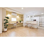 オープンな対面キッチンで、奥様は料理をしながら、デスクカウンターで勉強するお子様の様子を見ることができます。