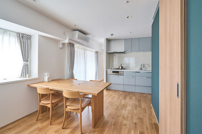リビング側からは浴室・洗面脱衣室に、キッチン側からはトイレに入れるよう配置した水廻り。「設備が新しくなり、身支度や家事がラクになりました」とS様。