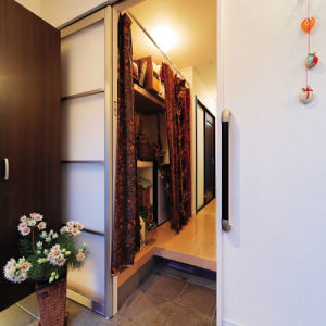 玄関から直接、食品庫に行ける動線はうれしい工夫。