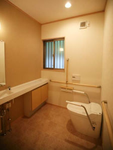 車椅子でもスムーズに移動できるようにローカやドアの幅を広くし、シンプルな間取りにすることで安全面にも考慮。平屋の限られたスペースでもゆとりを感じさせます。