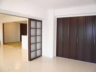 間仕切りは、和室の障子と合わせて、格子タイプの