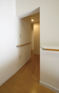 玄関の廊下からお父様の居室までの段差をゆるやかなスロープにして解消。